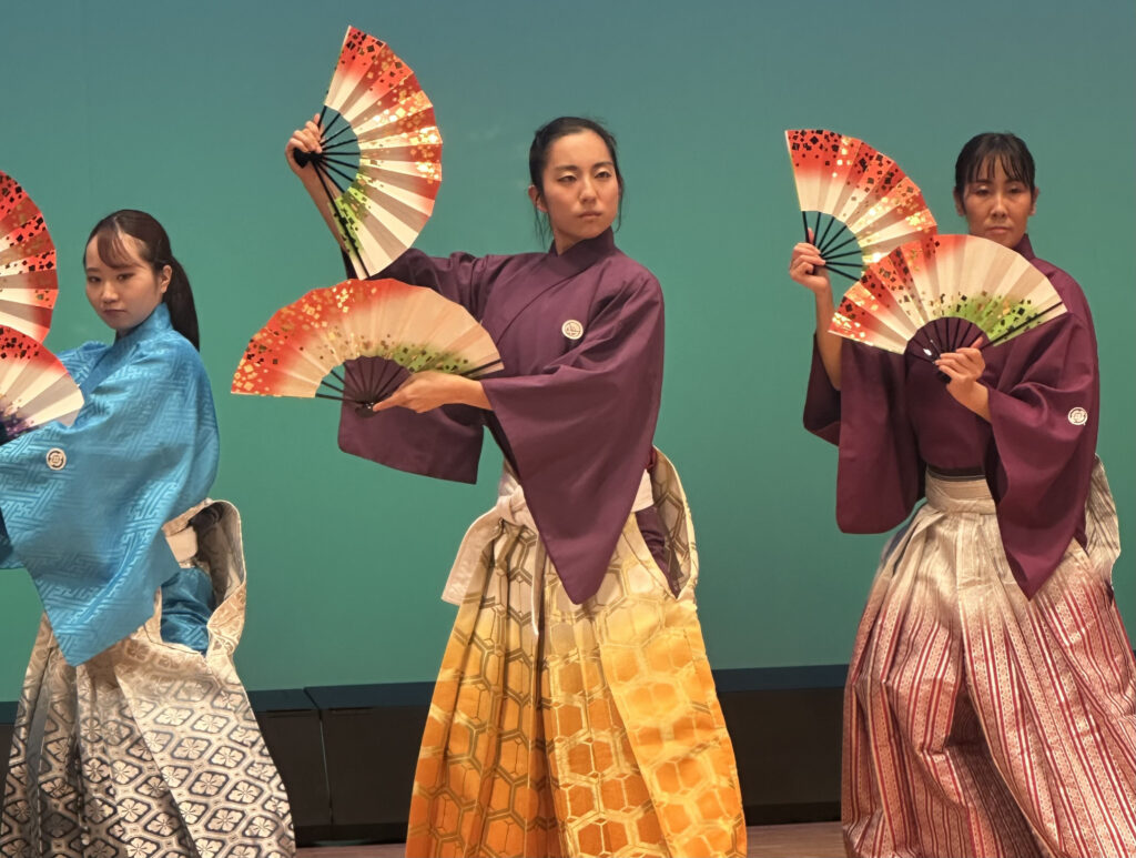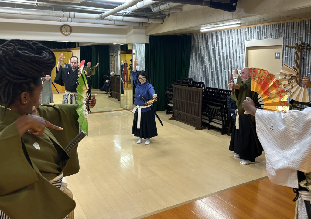 In both Kenbu and UK theatre, symbolism depends on active audience participation. Meaning is offered as suggestion rather than fixed image. When a Kenbu performer alters their stance and raises a fan, it may become a blade or a cup — not because it looks like one, but because the audience accepts the transformation.
