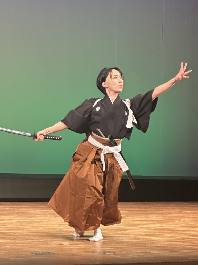 Kenbu is often described as a samurai sword dance, but on stage it operates as something more layered. Physical movement is inseparable from meaning. Poetry, breath, and stylised martial actions work together to create a physical language that communicates emotion and intention through the body. Movement does not decorate the poetry — it shapes how it is felt. In this way, Kenbu sits naturally alongside physical theatre practices in the UK, where the body often becomes the primary storytelling tool.